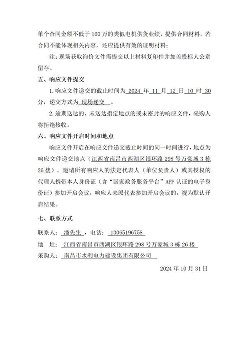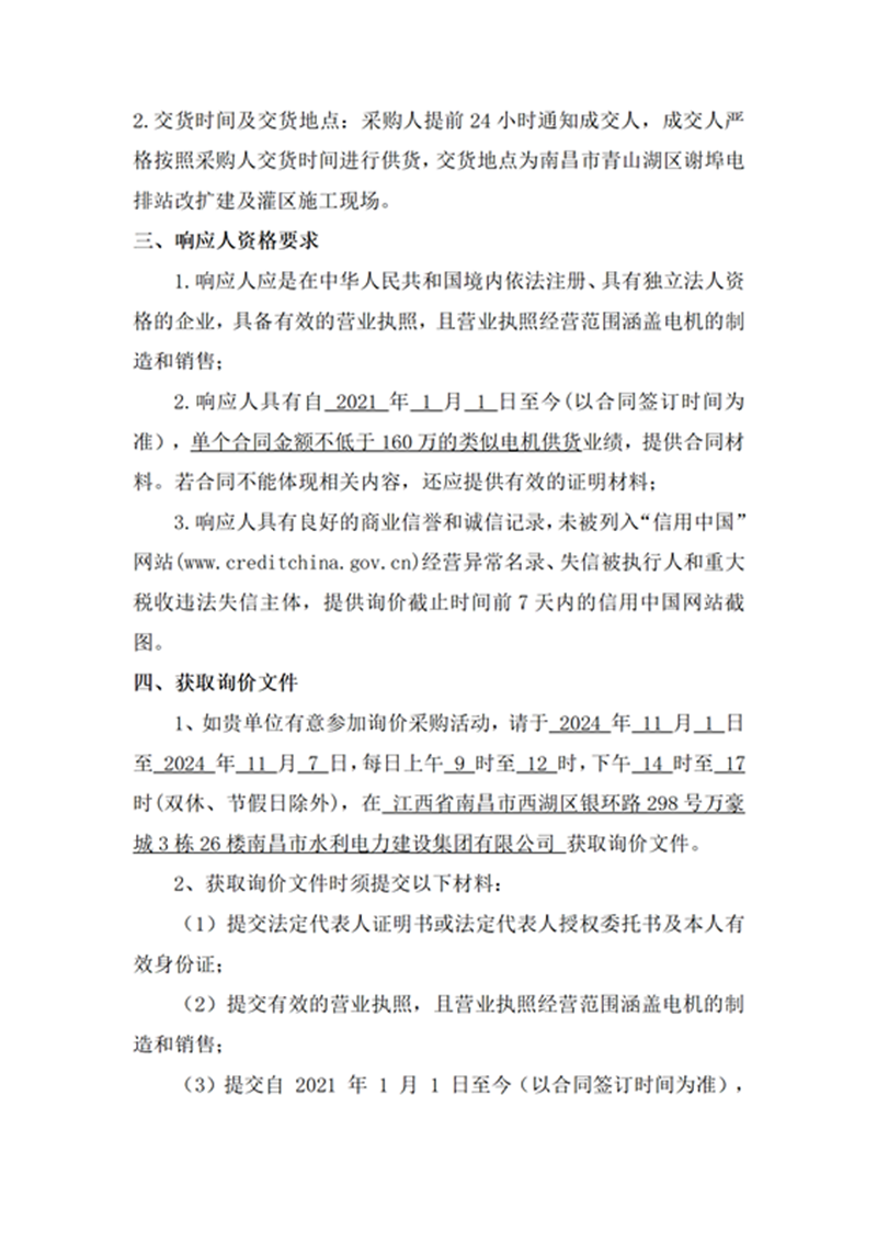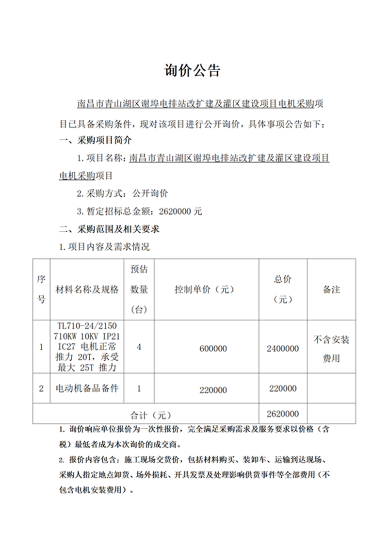 南昌市青山湖區(qū)謝埠電排站改擴建及灌區(qū)建設(shè)項目電機采購項目詢價公告