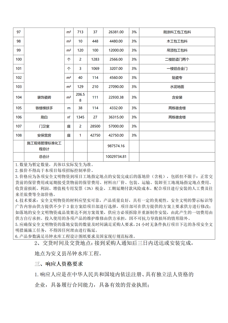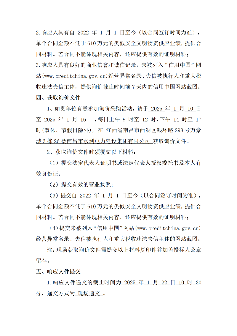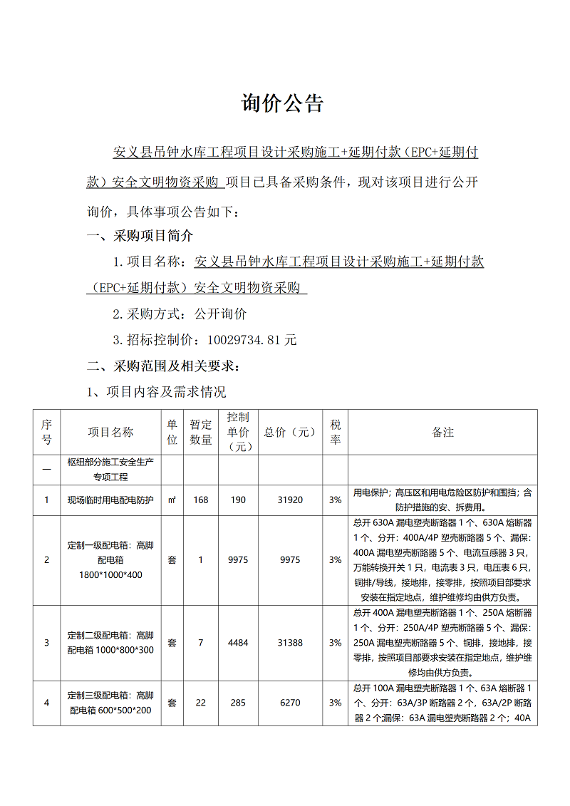 安義縣吊鐘水庫工程項目設計采購施工+延期付款(EPC+延期付款)安全文明物資采購項目詢價公告